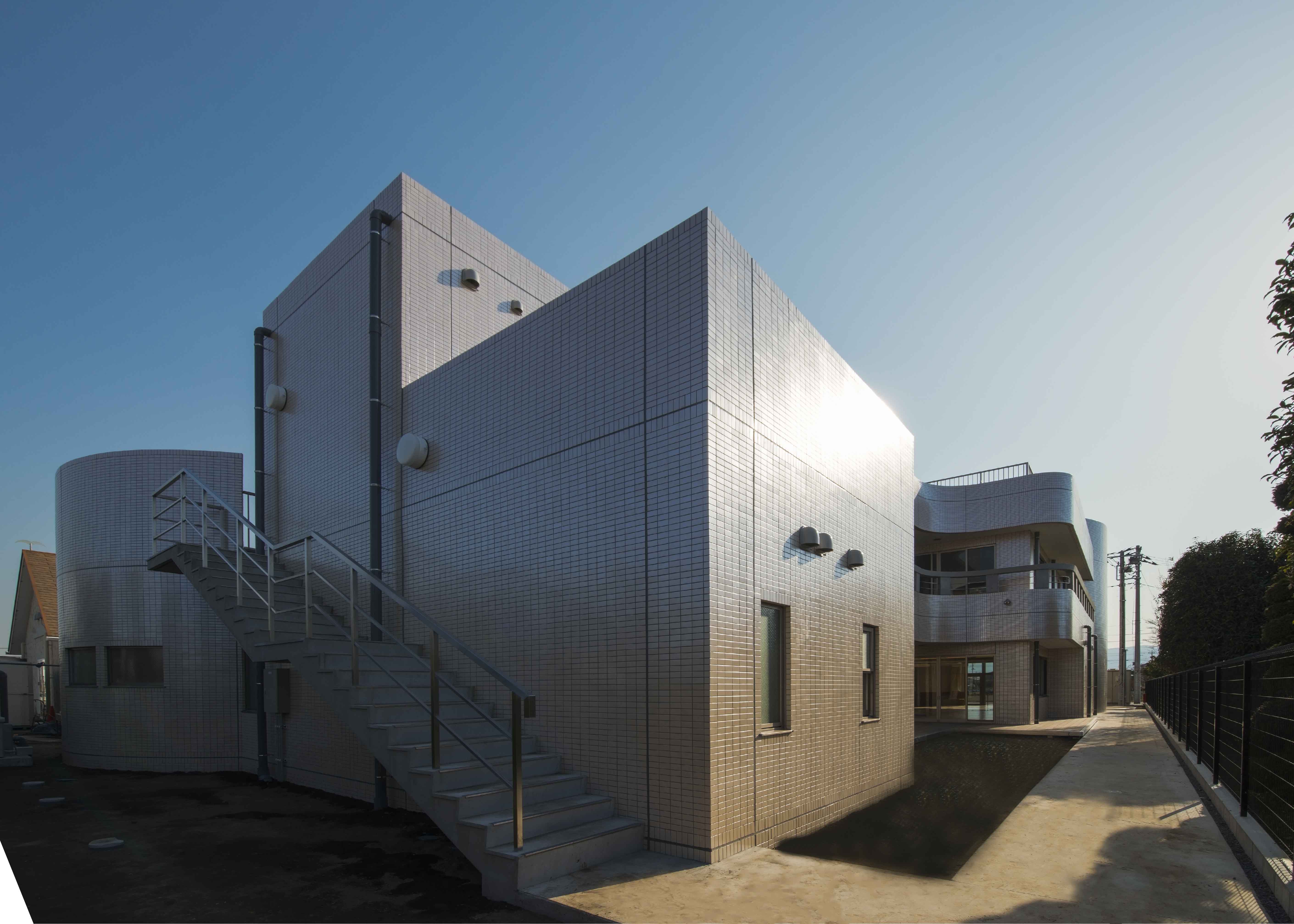 RC造2階建てのデイサービス施設です。建て主方の経験豊富なケアマネージャー担当者と綿密に打合せて設計しました。1階は交流スペース(ホール、休養室、浴室、事務室、キッチン)、2階はリハビリスペース(リハビリ室、休養室、テラス)という構成です。