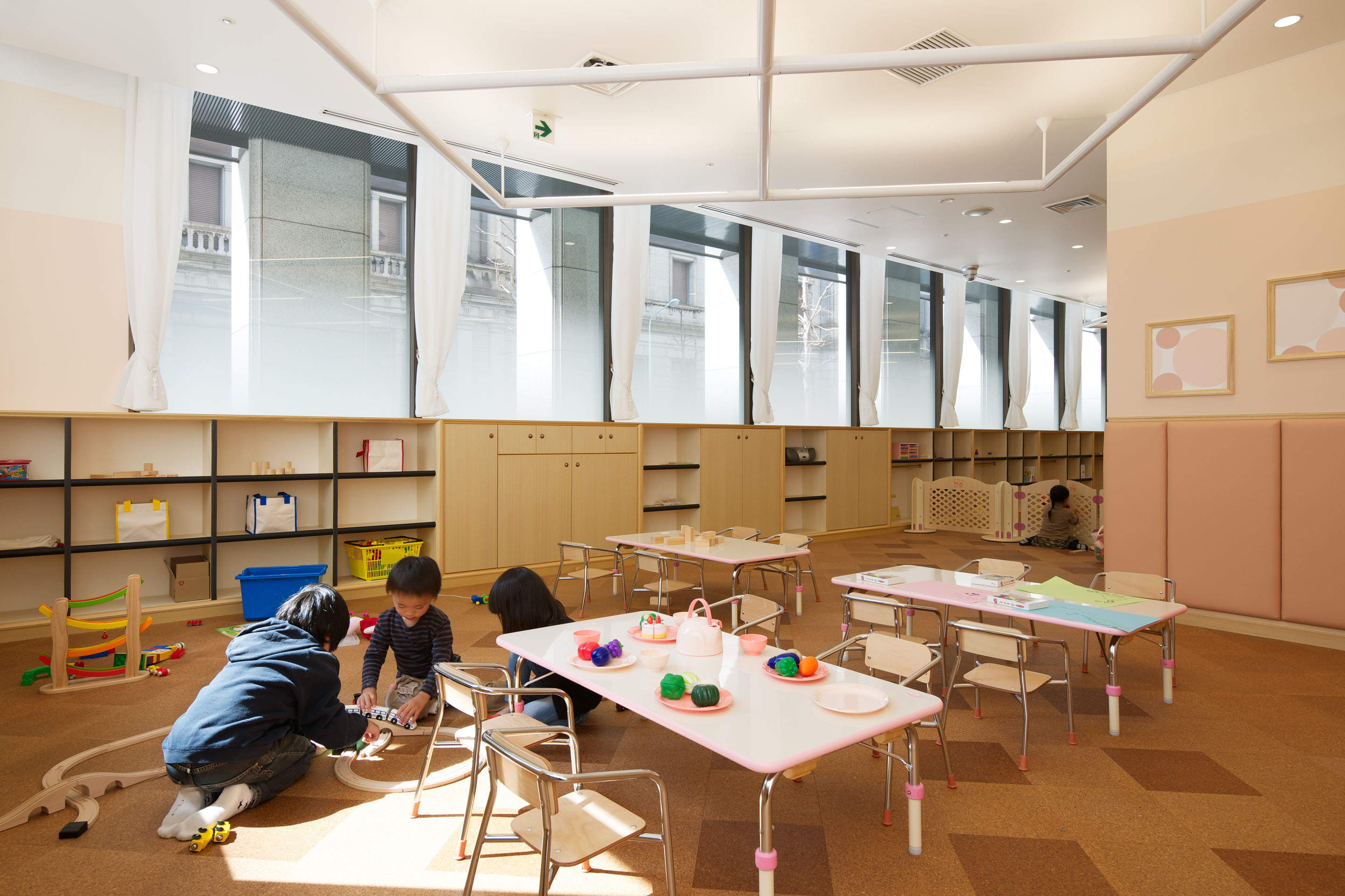 立地が都心の高級商業地=大人の街であることから、よく目にするビビッドな原色を多用した託児施設のしつらえと一線を画したいと考えました。