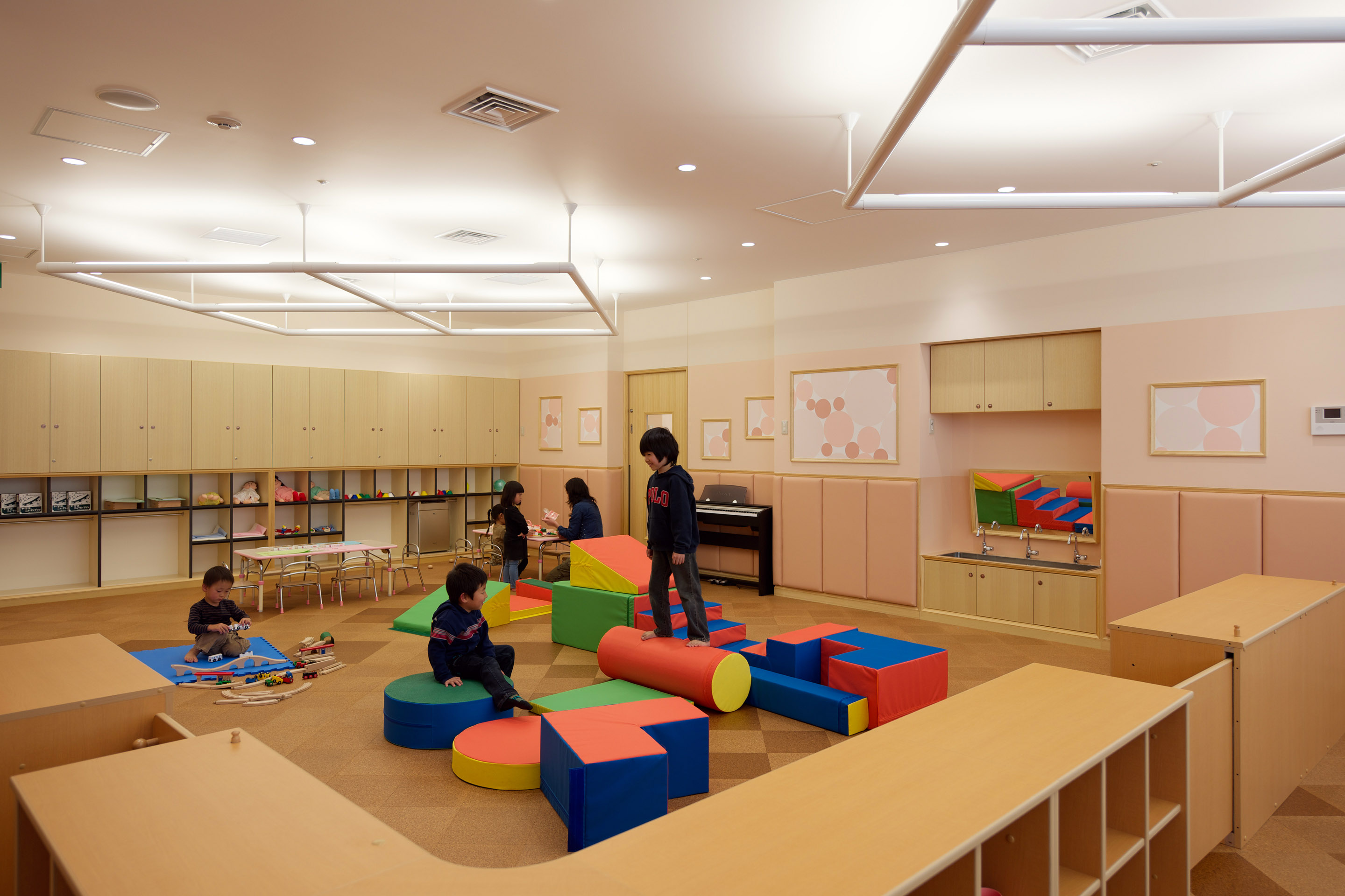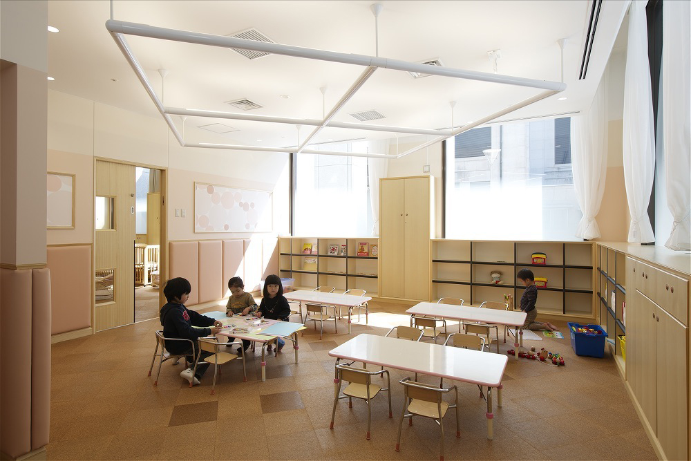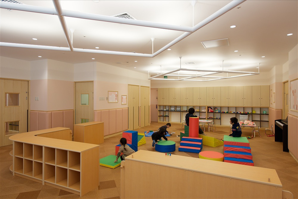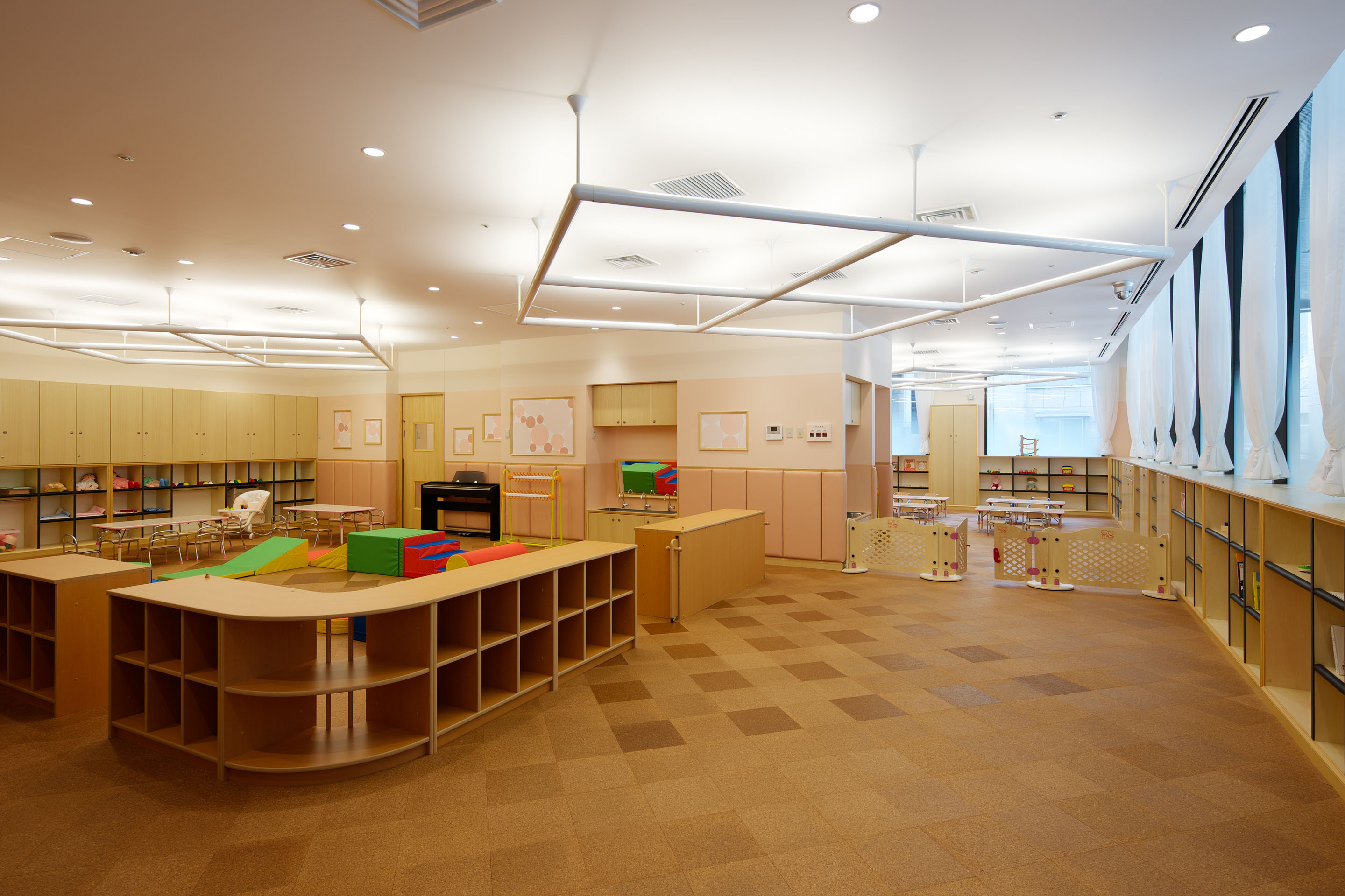 最大50人の幼児を預けることができる託児所のインテリアデザインです。某デベロッパーが、自社ビル入居のテナント事業者を優先的に入所させることを前提とした託児施設です。