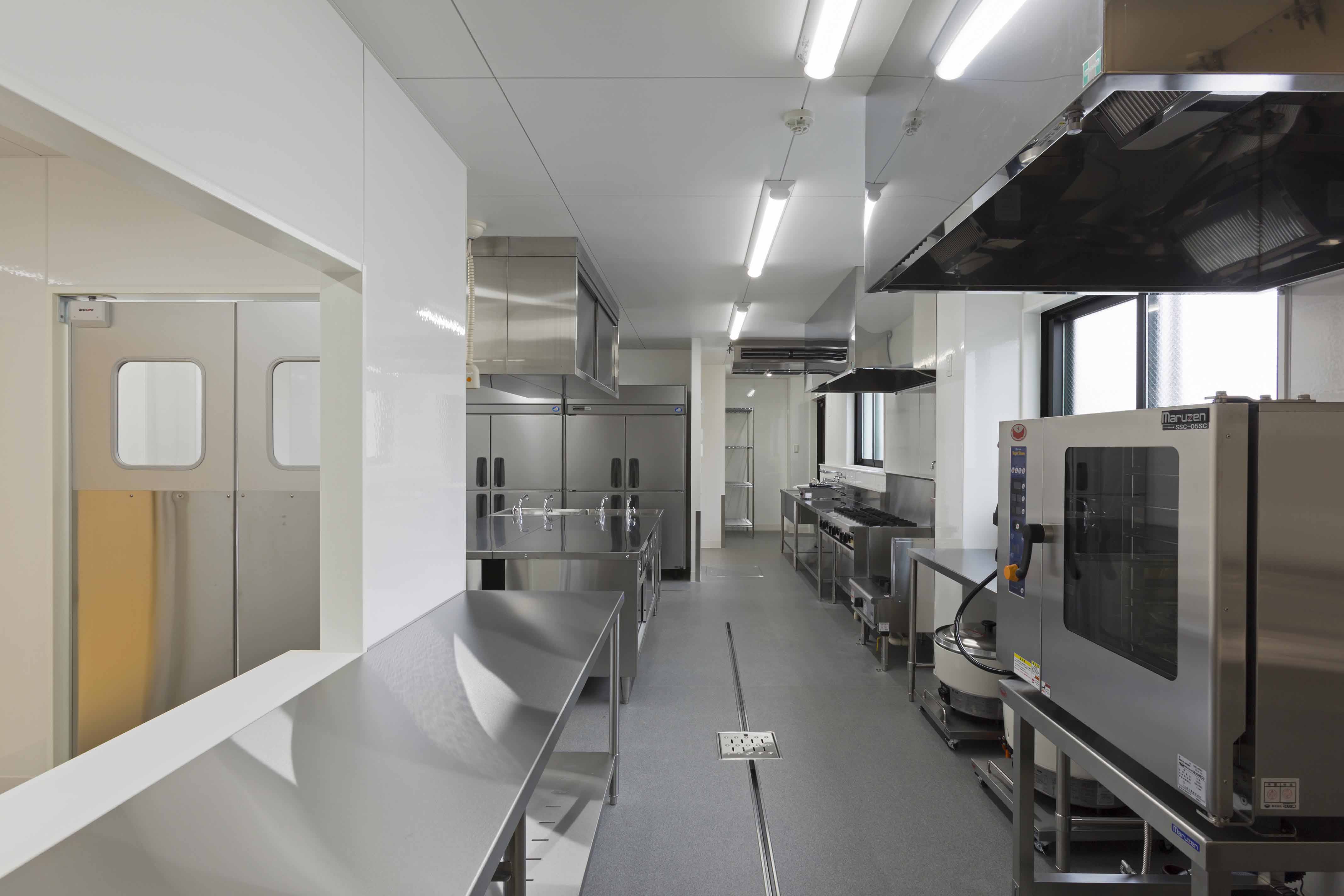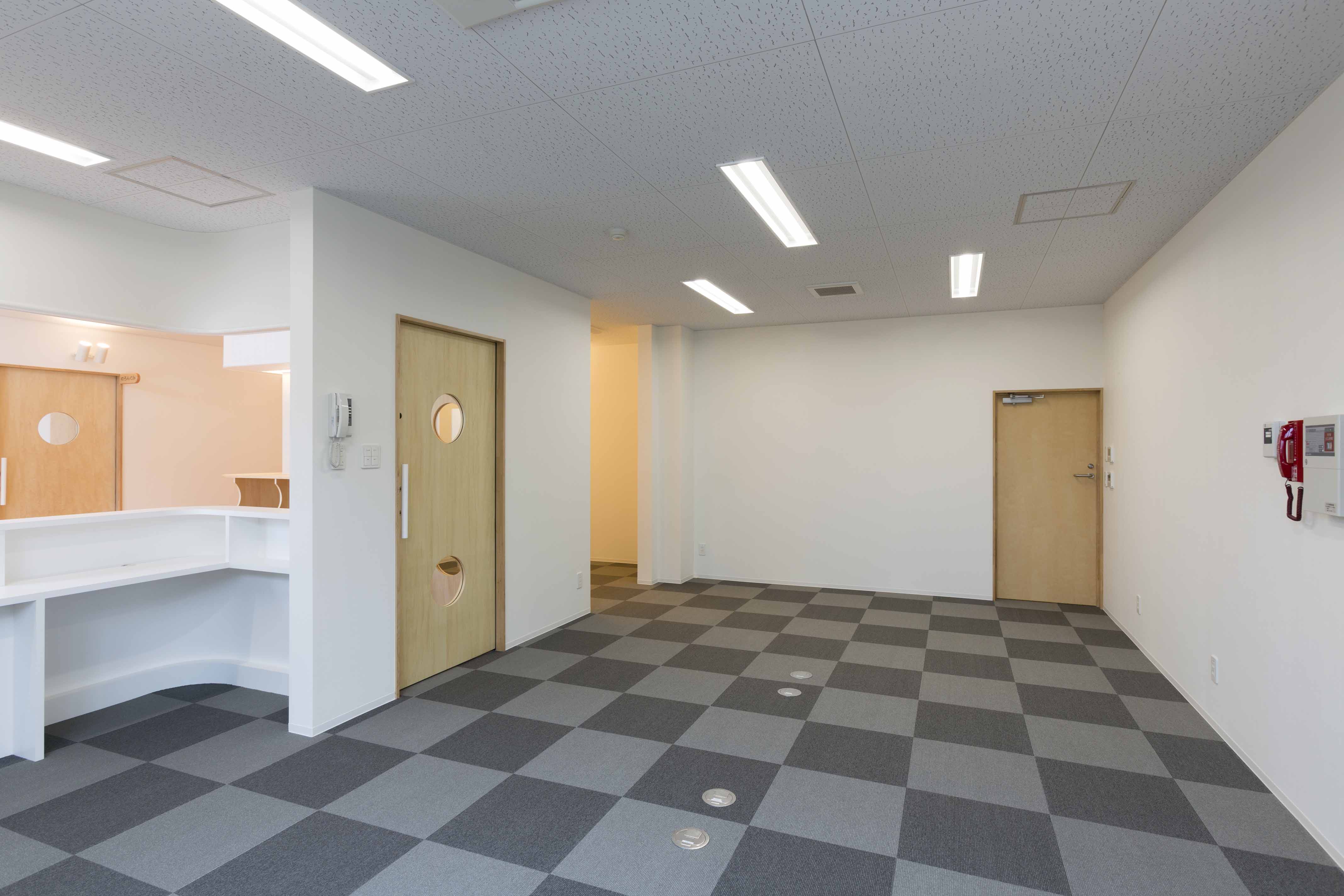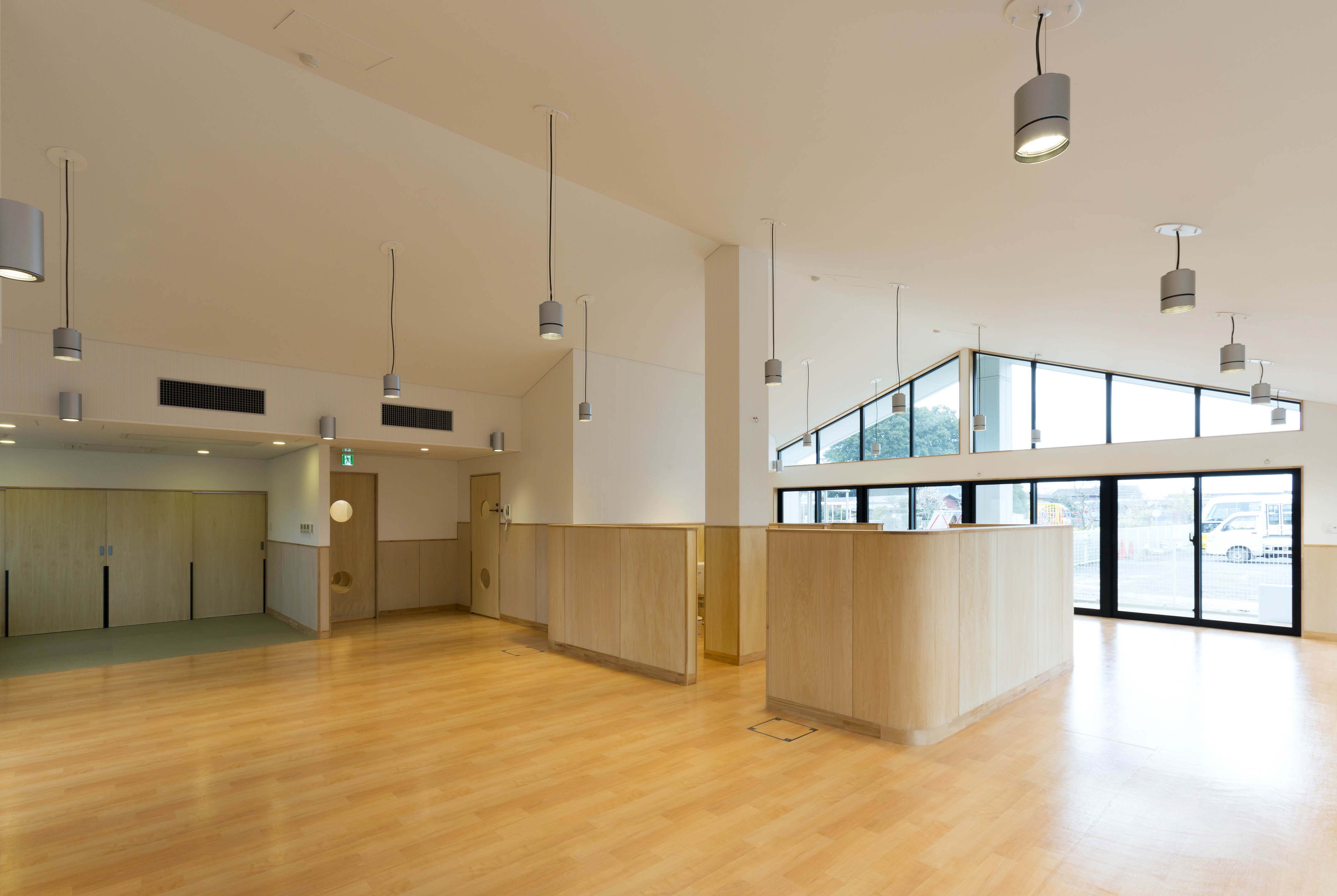 鉄骨造増築(別棟)の認定こども園です。1、2歳児と3歳児の2クラスの保育室、そして約150食提供の給食室を有する施設です。
