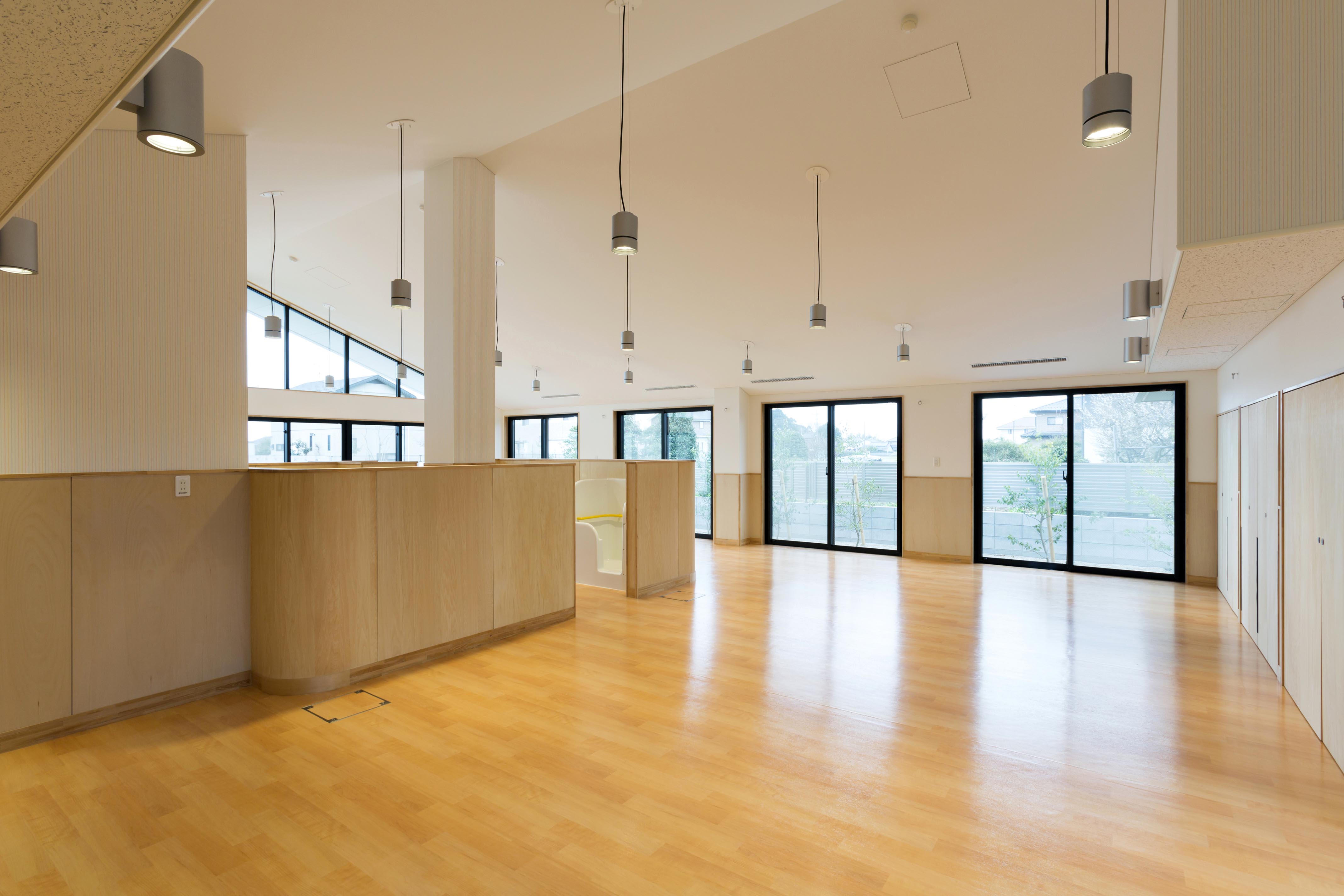 2つのクラスの保育スペースは一室内の住み分けとし、クラス間は家具やベビーゲートで区画することにしています。クラス間に閉じた壁をつくらないことで、保育士同士のコミュニケーションがとりやすく、保育士間の負担を均等にすることにつながり、幼児にとってはより細かいケアを受けやすくなります。